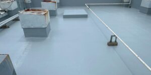洗浄、爆裂部分補修、下地処理、防水塗装、トップコート仕上げ、周辺外壁の塗装をおこないました。
